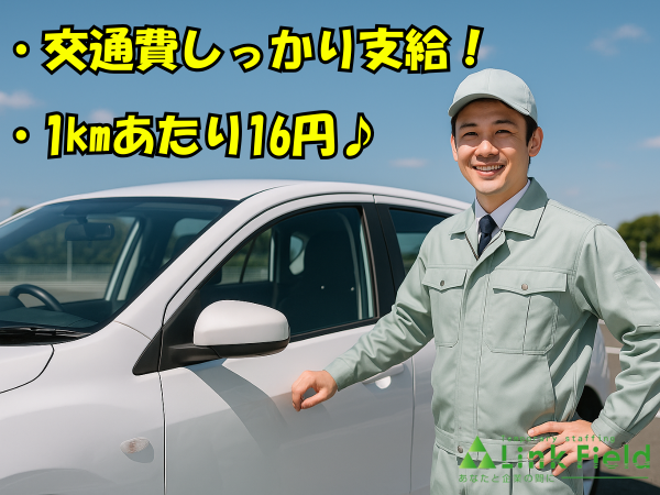 交通費は1km辺り16円で全額支給致します!駐車場も無料完備です。