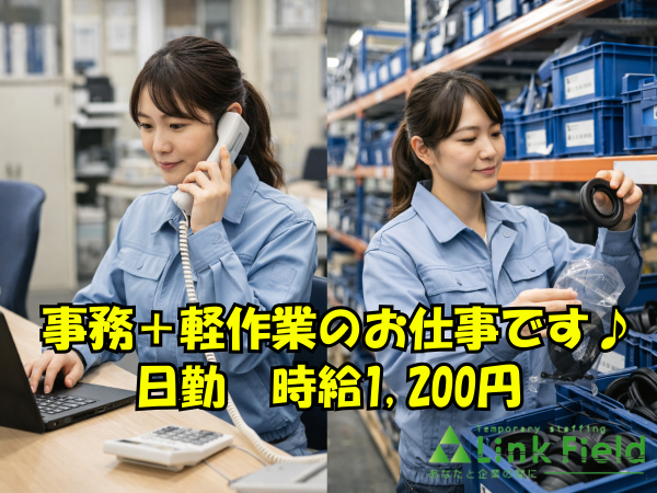 ゴムパッキンを製造している工場での事務+軽作業のお仕事です。