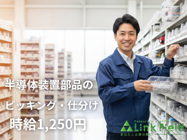 物流倉庫内にて半導体装置部品のピッキング・仕分け作業です。